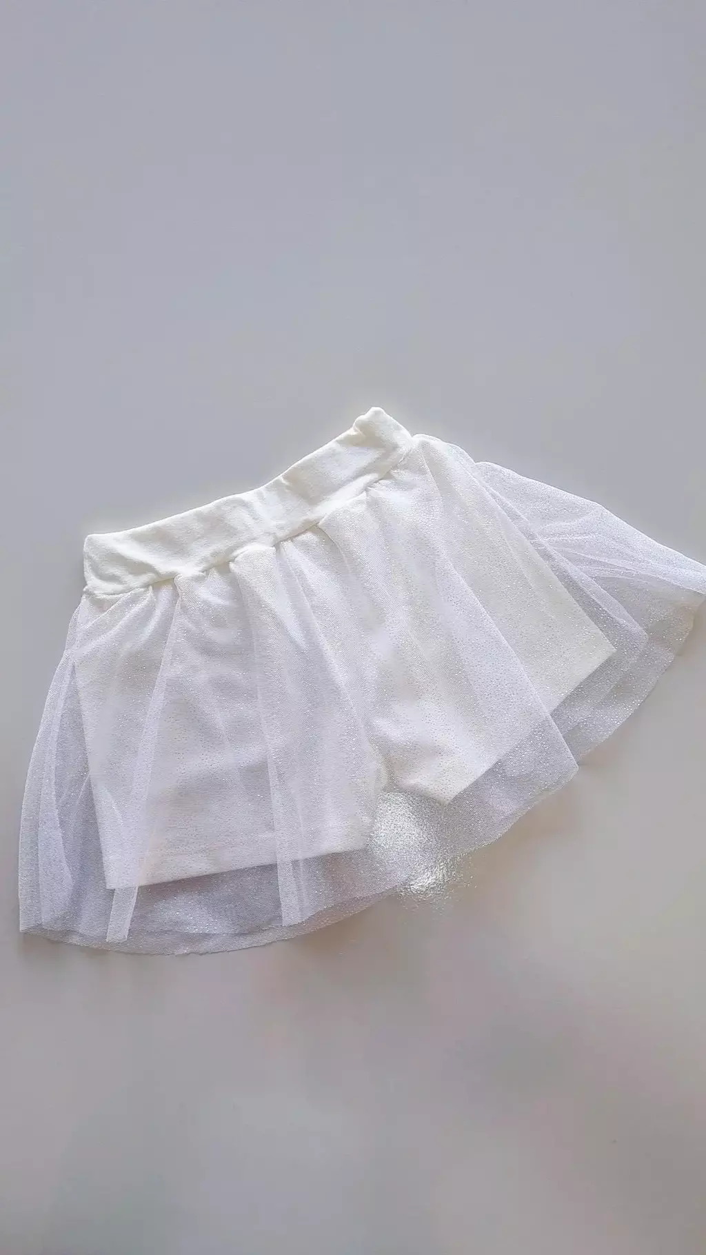 Composição:Tule: 100% poliester / Short: 96% algodão, 4% elastano